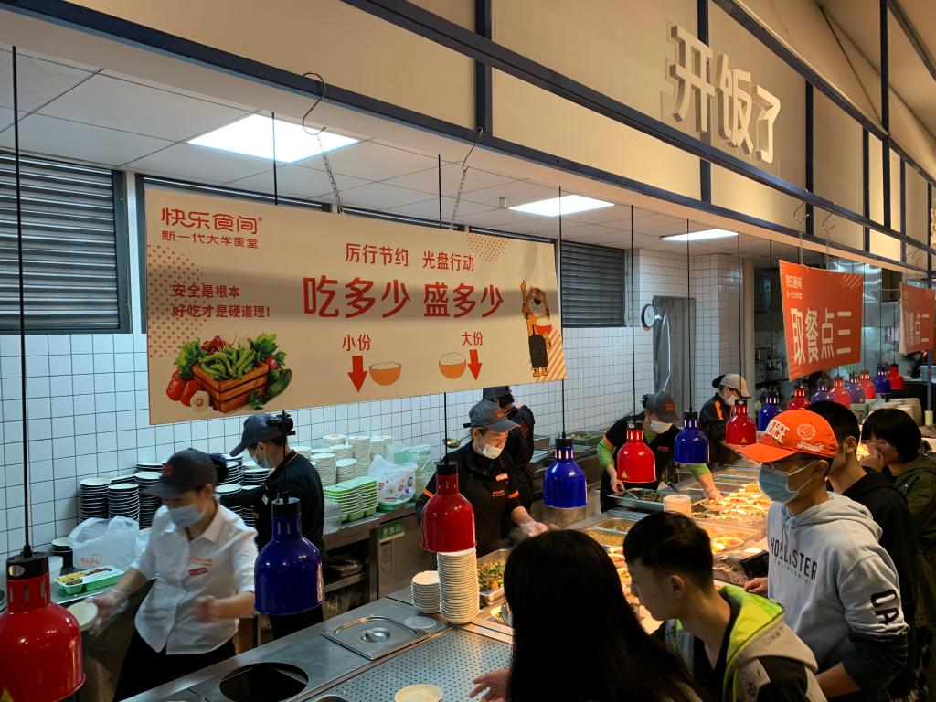 在筱园食堂三楼就餐的李同学说道:“食堂推出大、小份菜和按需取量称重售卖饭菜后,我们都是按需打饭,很少浪费。”