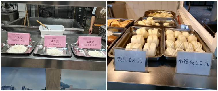 “外导”——从宣传引导推进。一是在各个食堂门口、大厅、墙上和柱子上随处可见“光盘行动”宣传海报和展架,时刻提醒师生们的节约粮食,拒绝浪费,营造了勤俭节约的良好活动氛围。开展“光盘有礼”有奖活动鼓励引导同学们爱粮节粮,合理消费,使节约粮食的理念深入每一个同学的脑海中。二是各食堂经理在开餐期间充当“节约粮食宣传员”,向就餐师生宣传节约粮食的理念,提醒师生做到餐餐光盘。三是积极改进饭菜出售方式,在外包食堂风味窗口推行大小份等多种售卖方式,特色按需取量“称菜如意”窗口,推出双人、三人套餐,米饭“按重量售卖”(熟米饭0.10元/50g)的展示提醒,基本大伙面食窗口售卖大、小馒头(大馒头100g,小馒头60g),大、小花卷。