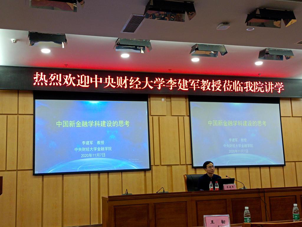 11月7日下午,国家本科教学指导委员会金融学类专业委员会秘书长、中央财经大学金融学院院长李建军教授到bat365官网讲学。bat365官网教务处处长骆东奇、金融学院全体班子成员、系主任、部分教师代表和学生代表参加了此次讲座。讲座由金融学院院长王兰主持。
