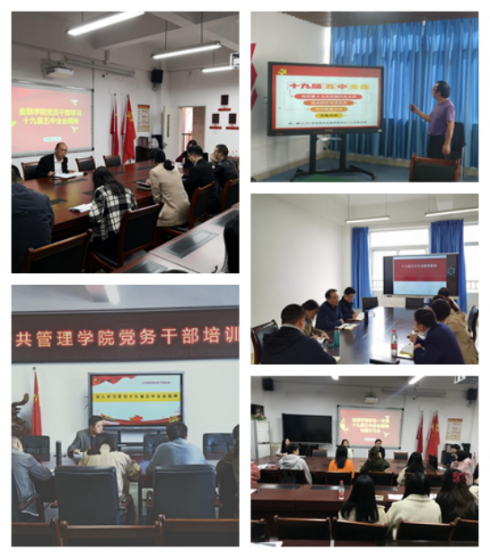 连日来,全校分党委、党总支和党支部组织党员学习习近平总书记在十九届五中全会上的重要讲话,原文原本学习《中国共产党第十九届中央委员会第五次全体会议公报》《中共中央关于制定国民经济和社会发展第十四个五年规划和二0三五年远景目标的建议》,对十九届五中全会精神进行广泛宣讲和深入学习。在党支部“三会一课”、主题党日组织党员集体学习基础上,各党组织采取多种方式开展学习,经济学院党委、金融学院党委等通过全院党员干部大会集中宣讲,工商管理学院学生支部举行了全会精神学习的征文,会计学院教工支部结合主题党日依托“党建移动课堂”开展学习,公共管理学院等专门针对党务干部开展了全会精神的专题培训。党员师生们围绕制定学校“十四五”发展规划、双一流建设、人才培养、学科科研建设、队伍建设、管理服务、文化建设等各项工作如何落实全会精神进行了深入讨论。大家纷纷表示,要充分发挥党员模范带头作用,认真贯彻落实全会精神,不断增强“四个意识”、坚定“四个自信”、做到“两个维护”,始终在思想上政治上行动上同以习近平同志为核心的党中央保持高度一致,坚定信心、科学谋划、鼓足干劲,把全会部署转化为具体行动,把全会描绘的美好蓝图一步一步变为现实,确保学校各项事业始终沿着正确方向前进,不断取得新的胜利。