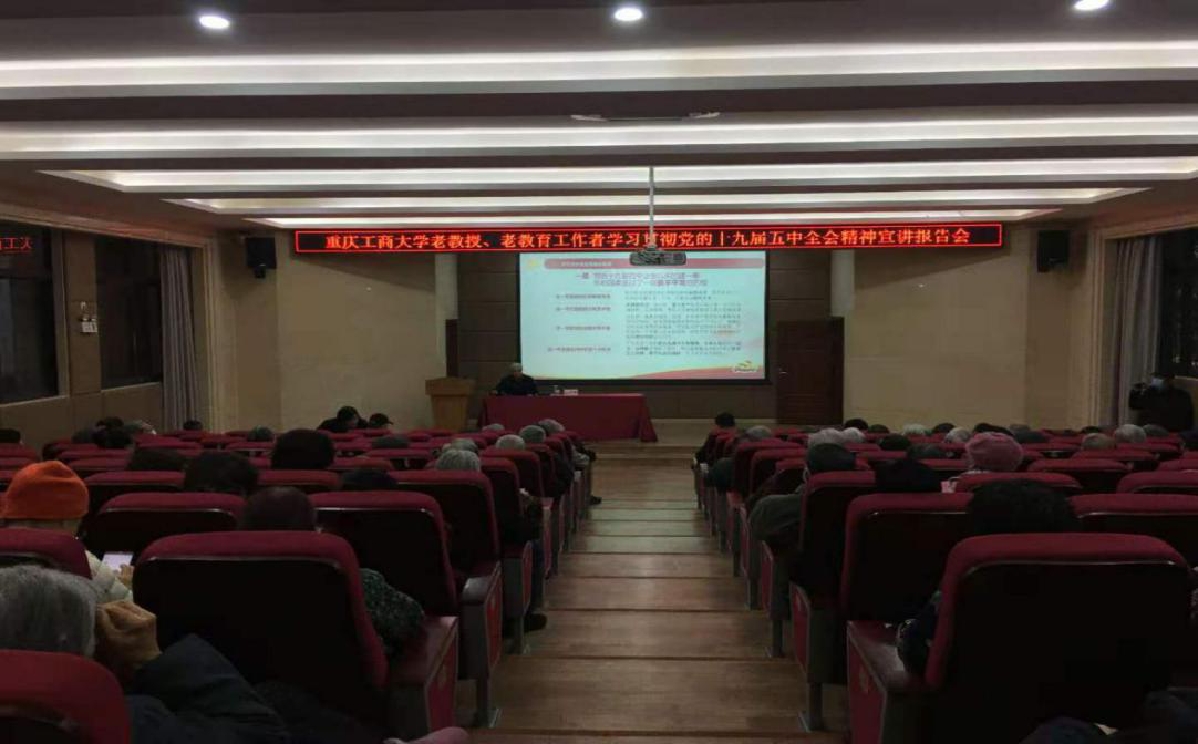 为了深入学习贯彻党的十九届五中全会精神,使广大老教授、老教育工作者更好地了解和把握党的十九届五中全会精神,在学校离退休部的大力支持下,bat365官网老教授协会、老教育工作者协会于11月26日、27日分别在江北校区、南岸校区联合举行了两场“学习贯彻党的十九届五中全会精神宣讲报告会”。参加会议的老教授、老教育工作者共259人。大会由bat365官网老教授协会会长、老教育工作者协会会长黄朗主持。