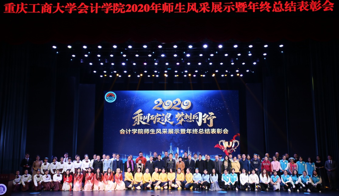 为加强会计学院师生凝聚力,深入学习贯彻党的十九届五中全会精神,把握“十四五”时期经济社会发展的六大“新”目标,创新引领发展的人才工作载体,建设符合国家发展要求的人才培养方式,乘势而上,会计学院于12月18日下午在图书馆大剧场隆重举行会计学院2020年师生风采展示暨年终表彰会。出席此次表彰大会的有校党委书记李志雄、副书记宋豫,副校长陈兴述,党委学工部部长申卫东、教务处处长骆东奇、研究生院院长田双全、财务处处长莫云、教学质量监督与评估办公室主任曾晓松、党委组织部副部长于频、党委学工部副部长尹建平、招生就业处副处长王静、校团委副书记胡婧婷、优秀校友代表张辅辙、徐国富,会计学院班子成员、全体教职工和学生代表。
