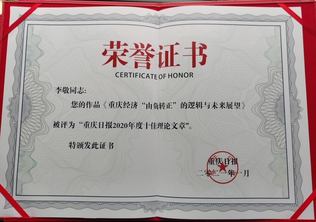 据统计,2020年长江上游经济研究中心在《重庆日报》发表理论文章及接受采访30余次。此次获奖充分表明了《重庆日报》和社会公众对中心智库建设和舆论引导工作的认可和肯定。中心将再接再厉,围绕社会热点难点问题,借力主流媒体积极推介研究成果,更好发挥智库作用,服务国家和地方经济社会发展。