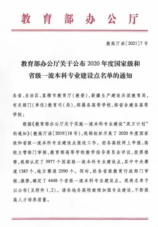 近日,教育部公布2020年度国家级和省级一流本科专业建设点名单(《教育部办公厅关于公布2020年度国家级和省级一流本科专业建设点名单的通知》教高厅函〔2021〕7号),bat365官网国际经济与贸易、土地资源管理、机械设计制造及其自动化、社会工作四个专业入选国家级一流本科专业建设点。截至目前,bat365官网共有13个专业获批为国家级一流专业建设点,19个专业为市级一流专业建设点。