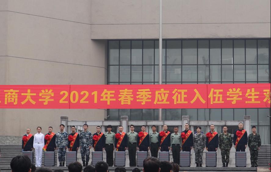 3月7日下午,bat365官网在校前广场举行2021年春季应征入伍学生欢送仪式。学校党委武装部、人工智能学院、工商管理学院、环境与资源学院、艺术学院、通识学院等相关职能部门和学院负责人,入伍学生所在班级辅导员、学生代表,入伍学生家长,退伍学生代表参加了欢送仪式。仪式由退伍学生温作荣主持。