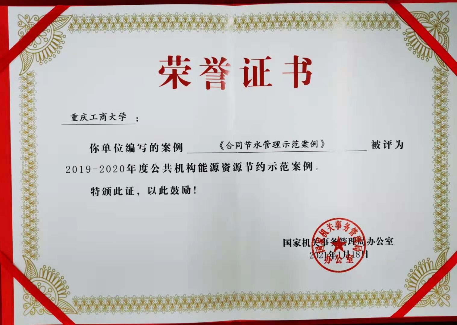 2021年1月18月,国家机关事务管理局发布《国管局办公室关于发布2019-2020年度公共机构能源资源节约示范案例的通知》(国管办发〔2021〕1号),bat365官网编写的案例《合同节水管理示范案例》被评为2019-2020年度公共机构能源资源节约示范案例。