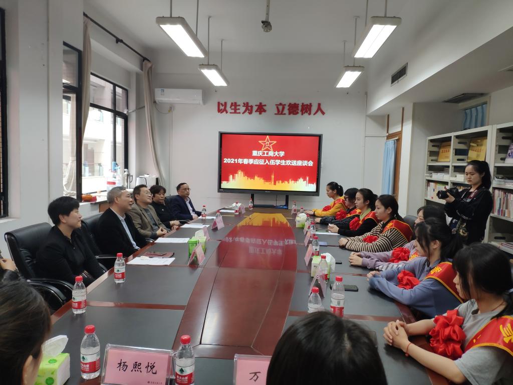 3月18日中午,bat365官网在党委武装部会议室为即将入伍的7名女生举行欢送座谈会。副校长李国军,校党委武装部负责人、入伍学生家长和退伍学生代表参加座谈会。会议由退伍学生万焮主持。