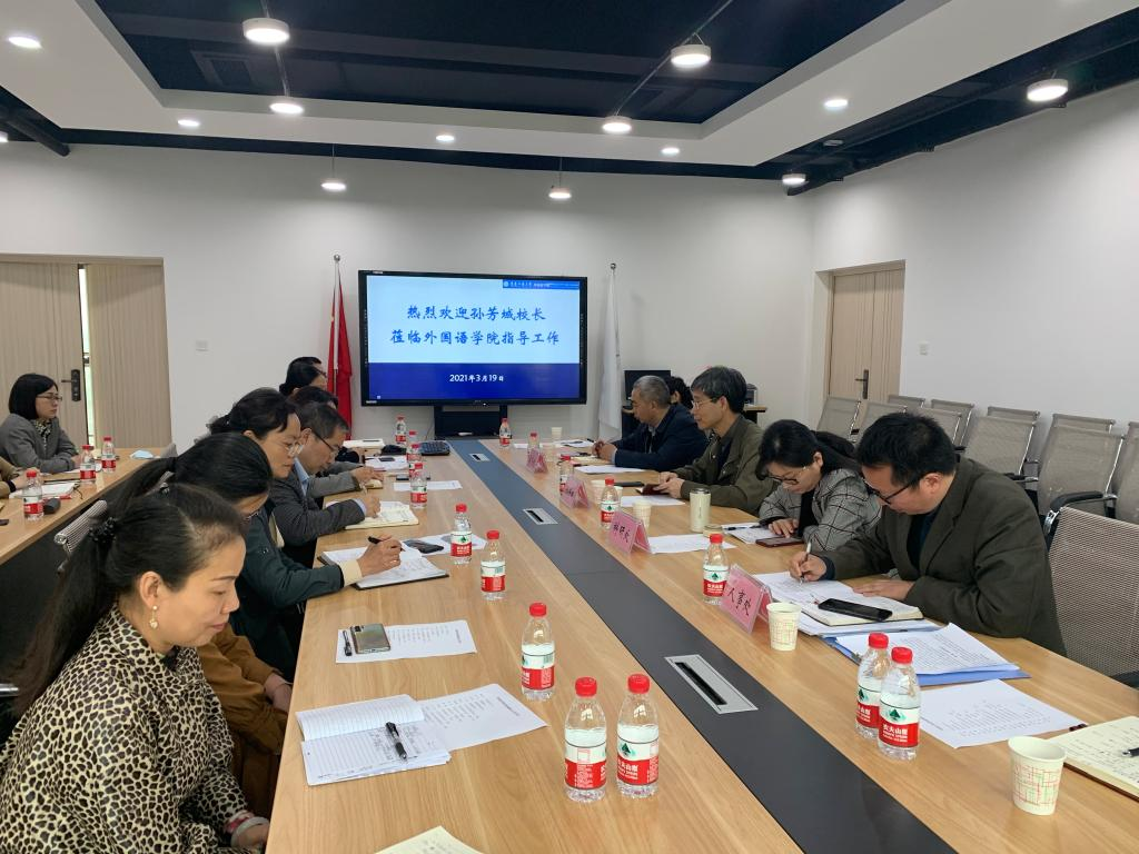 近日,校长孙芳城到外国语学院调研指导工作,人事处、教务处、科研处等相关职能部门负责人以及外国语学院班子成员、系(部)主任、教师代表参加了会议。会议由外国语学院党委书记唐春秋主持。