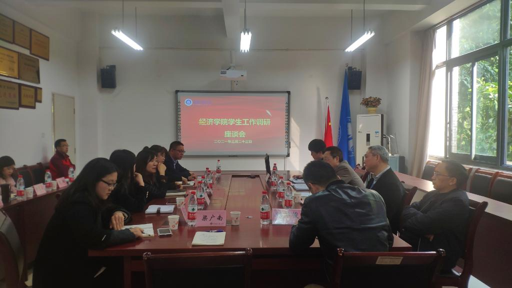 近日,副校长李国军到经济学院调研学生工作,党委学生工作部部长申卫东、副部长尹建平、陈亚惠、经济学院党委书记李自维、党委副书记、副院长王燕、专职组织员雷菁、副院长朱沙、全体专职辅导员以及学生代表参加了座谈。座谈会由王燕主持。