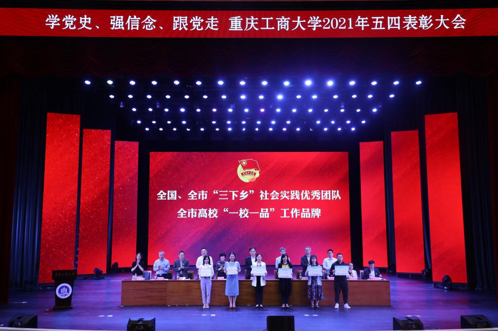 随着庄严的国歌响起,大会正式拉开序幕。大会首先由校团委书记杨娟宣读《共青团bat365中文官方网站委员会关于表彰2020-2021学年先进集体和个人的决定》,随后为获奖集体和个人代表进行颁奖,颁发奖项包括全国、重庆市社会实践活动优秀团队、重庆市高校“一校一品”优秀团学工作品牌、五四红旗团委、共青团特色创新奖、宣传工作奖、五四红旗团支部、优秀学生会、优秀义工志愿者协会、优秀分团委书记、共青团标兵、优秀团干部、优秀团员及校级“挑战杯”等奖项。