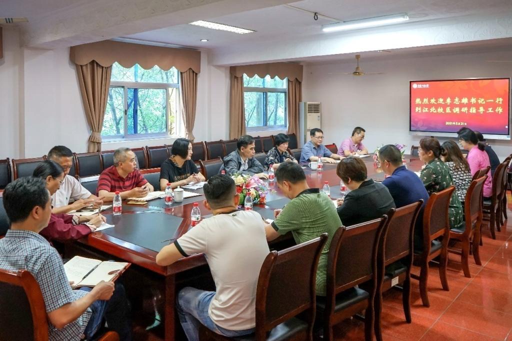 5月31日下午,学校党委书记李志雄,党委副书记宋豫一行到通识学院(江北校区管委会)调研并指导全面从严治党工作。调研座谈会在修德楼三楼会议室举行。党政办公室、党委组织部、党委学生工作部、教务处、后勤处和通识学院(江北校区管委会)等部门负责人参加座谈会。