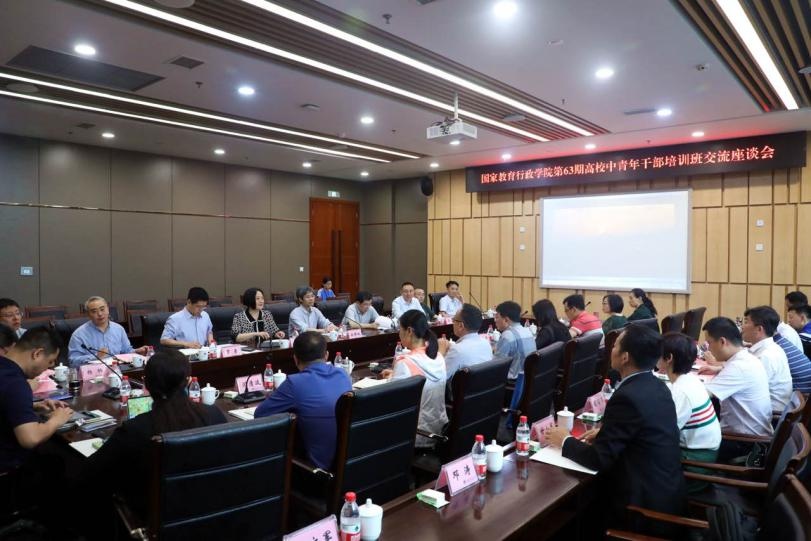 6月2日上午,国家教育行政学院第63期高校中青年干部培训班调研座谈会在bat365官网图书馆会议中心五会议室举行。国家教育行政学院带队教师石连海、马丽红,考察团团长杨羽、副团长李文军和相关成员共31人参加了座谈会。bat365官网校长孙芳城,副校长赵骅及相关职能部门负责人参加会议。会议由党委常委、党委组织部部长郑夕春主持。