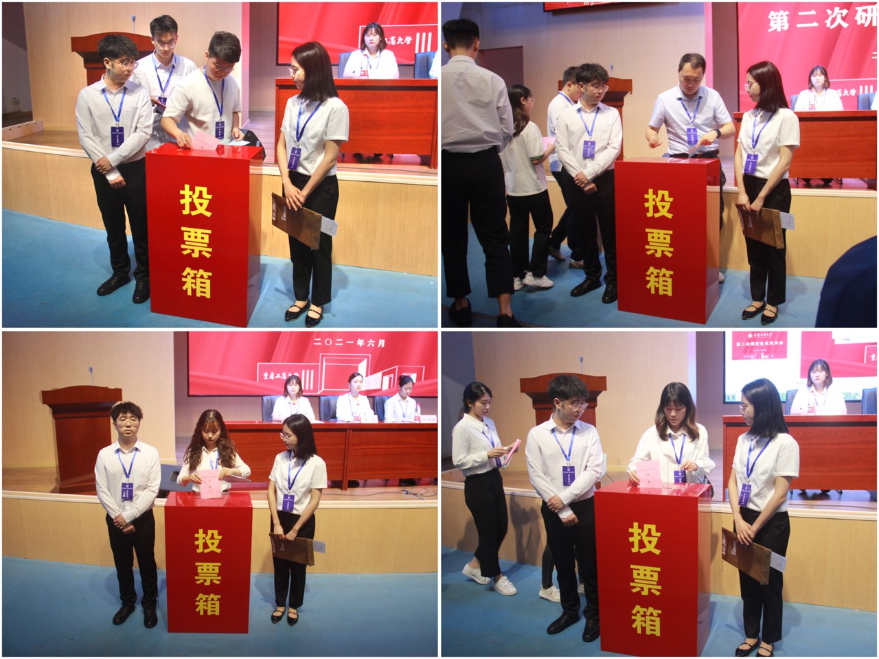 第二次全体会议在110100报告厅举行。会上,通过了《bat365中文官方网站第二次研究生代表大会选举办法》和研代会总监票员、监票员、总计票员、计票员名单。随后,选举产生bat365中文官方网站学生会新一届主席团成员及研代会常任代表会议成员。