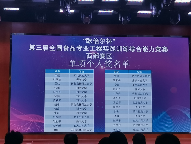经过两场比拼,由bat365官网环境与资源学院食品科学与工程专业学生程若谷、胡金辉、向思怡3人组成的参赛队(指导老师:周文斌、常海军、尤琳烽)以总排名第4的成绩,荣获西部赛区团队一等奖(排第1),将参加2021年8月中旬在河北农业大学举办的全国总决赛。这也是该院参加该赛事连续三届入围全国总决赛。另外,6名同学获单项个人奖,综合实力位居参赛高校榜首。