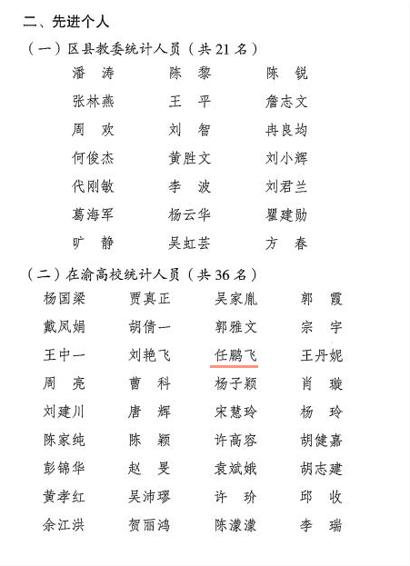 日前,重庆市教育委员会公布了《关于重庆市2020年教育事业统计工作先进集体和先进个人的通报》,bat365官网被评为重庆市2020年教育事业统计工作先进集体,任鹏飞同志被评为全市教育事业统计工作先进个人。