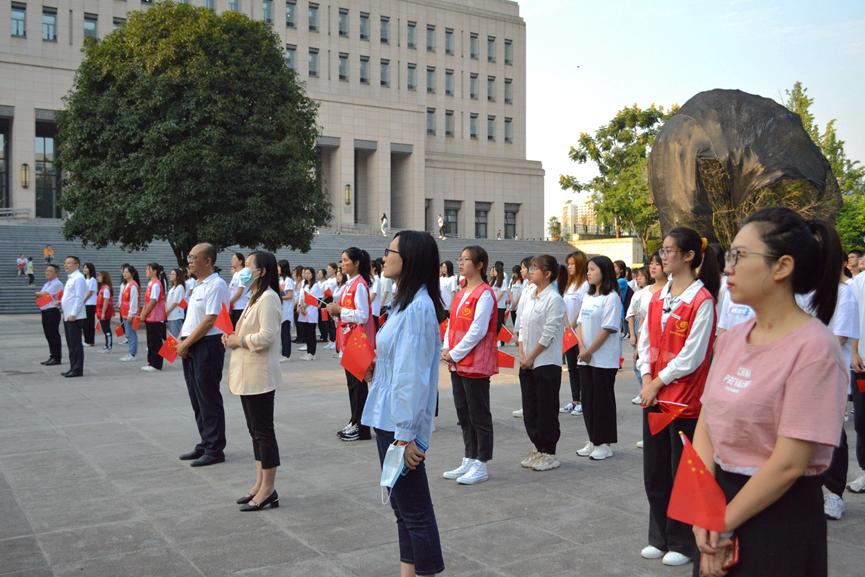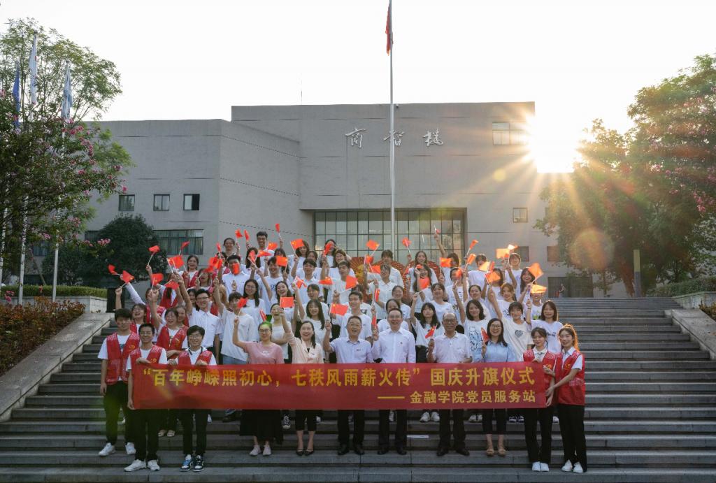 为庆祝中华人民共和国成立72周年,10月1日清晨,bat365官网在含弘广场隆重举行国庆升旗仪式。党委常委、党委宣传部部长华杰,党委学工部部长申卫东,金融学院党委书记王建明、副书记余新,以及部分师生代表一起参加了升旗仪式。