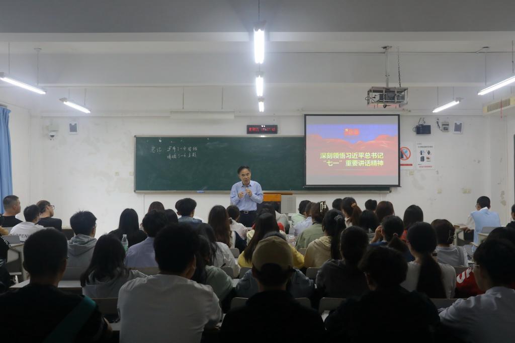 李志雄以习近平总书记在天安门城楼上的庄严宣告引题,激发了同学们的自豪感和自信心,解读了中华民族真正的伟大复兴的深刻内涵。他详细讲述了中国共产党百年以来的奋斗历程,中国共产党自成立以来始终把“为中国人民谋幸福,为中华民族谋复兴”作为己任,高度赞颂了伟大建党精神;讲述了习近平总书记所强调的以史为鉴、开创未来必须牢牢把握的“九个必须”经验启示和根本要求,要把握其内在逻辑,领悟其精神实质,才能更好的推进新时代改革开放事业。他希望同学们能深入领会习近平总书记所强调的“未来属于青年,时代寄予青年”的深刻内涵,希望广大青年要牢记习近平总书记的嘱托,志存高远,脚踏实地,勇做时代的弄潮儿,为实现中国梦不懈奋斗。