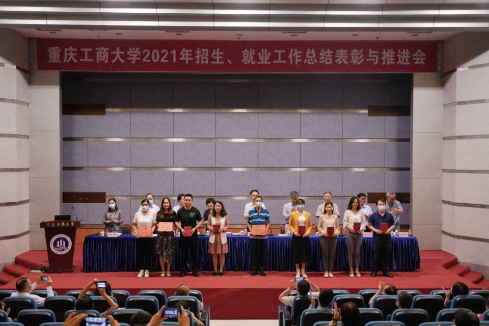 招生就业处处长钟增胜总结了bat365官网2021年本科招生就业工作。党委副书记宋豫宣读了2021届就业工作先进集体和先进个人表彰文件,参会校领导为获奖的集体和个人代表颁奖。先进集体代表机械学院党委书记、院长杜力,专业代表文学与新闻学院汉语言文学系主任郑升,先进个人代表艺术学院辅导员孔好为作了交流发言。