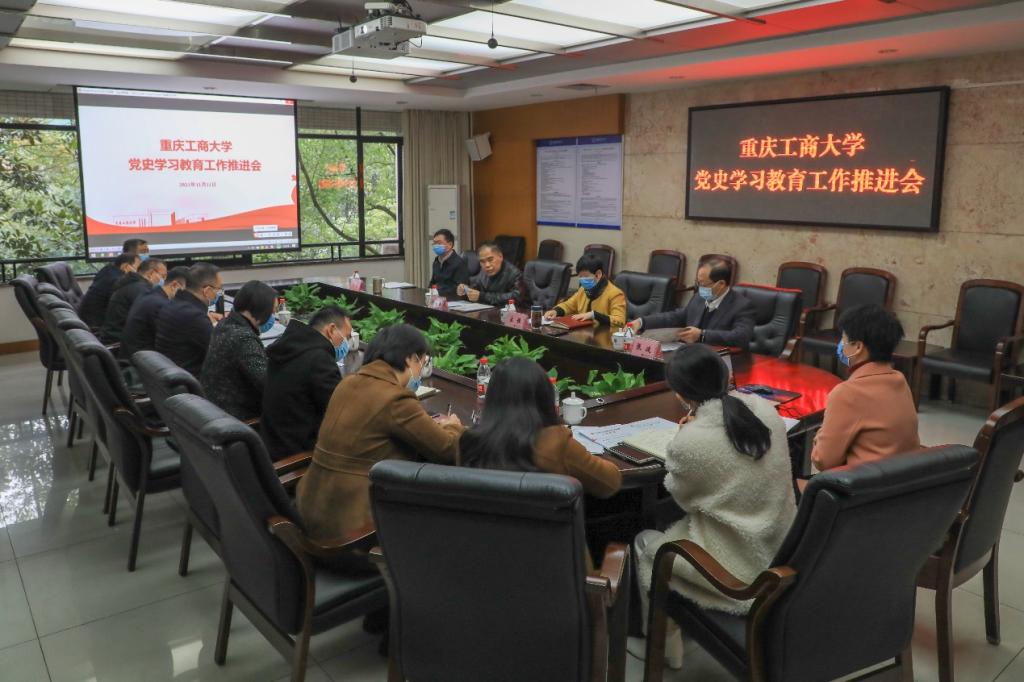 11月11日下午,bat365官网在厚德楼3019会议室召开党史学习教育工作推进会。学校党委书记、党史学习教育领导小组组长李志雄,党委副书记、党史学习教育领导小组副组长宋豫,党委常委、纪委书记、监察专员周航,党委常委、副校长张波参加会议。会议由李志雄主持。
