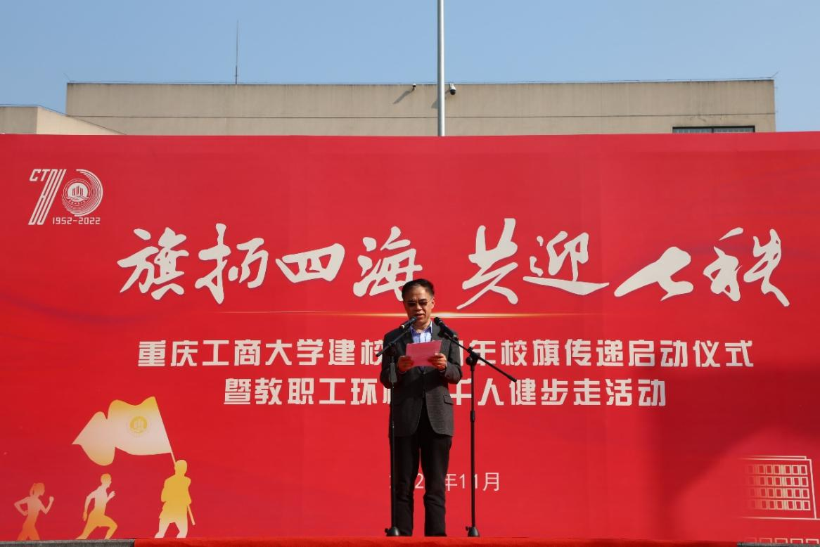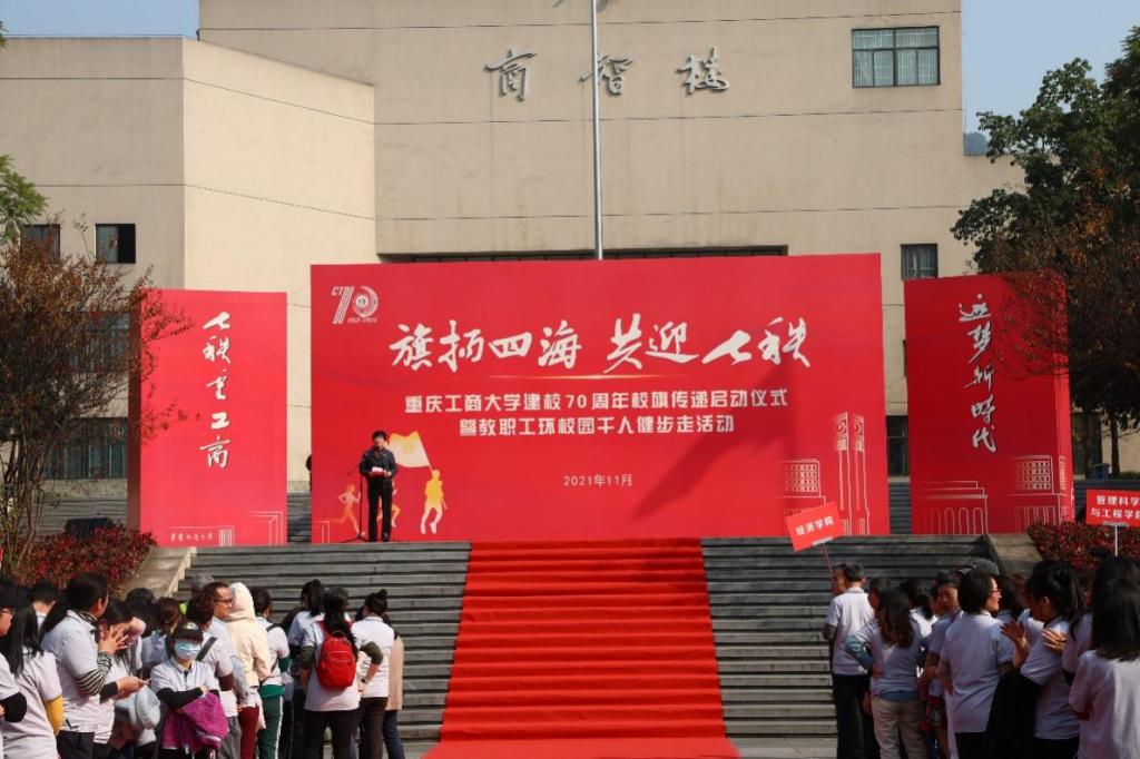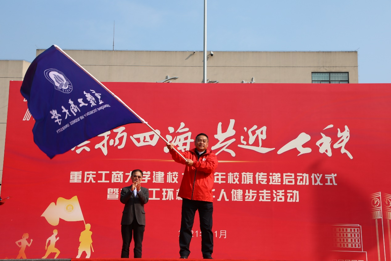 宋豫在主持中谈到,上下求索,兴我工商;校旗传递,汇聚力量。校旗承载着“含弘自强,经邦济民”的重工商大精神,承载着“厚德博学,求是创新”的重工商大校训,承载着全校3万余师生和30余万校友浓浓的爱校情。校旗从学校出发,将历经国内35个地区的校友分会,8个海外校友组织,历时7个月,于明年6月12日校庆当日,返回学校。旗扬四海,共迎七秩,让我们目送校旗渐行渐远,让我们放飞重工商大人的梦想。