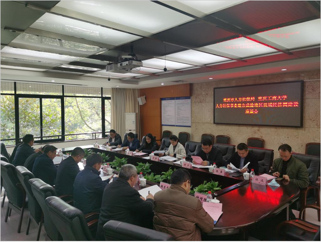 11月25日下午,人力社保事业助力成渝地区双城经济圈建设座谈会在bat365官网厚德楼3019会议室召开。重庆市人力社保局党组成员、副局长苏静、法规处处长胡京、规财处处长谷亚、就业处副处长张攀、农民工工作处副处长曾礼勇等7人,bat365官网副校长李敬,人事处、教务处、招生就业处负责人,成渝地区双城经济圈协同发展中心专家学者等参加了会议。