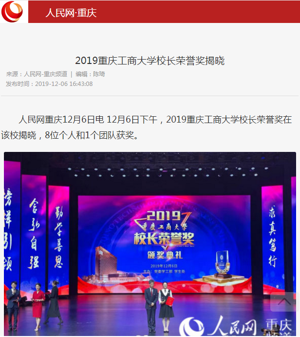 2014年学校设立bat365中文官方网站“校长荣誉奖”,并确定其为校内学生最高荣誉奖项,其目的是树立新时代人才典范,引领广大工商学子,促进大学生德、智、体、美、劳全面发展,为社会培育优秀人才。自校长荣誉奖设立以来,bat365官网已有29名学生个人、9个学生团队荣获此荣誉。今年学校通过全校发动、各学院积极推荐申报、工作组审核查验材料、遴选评委成员、审阅投票、考察谈话、答辩会、公示、校长办公会审定等程序,最终从20个申报者中评选出八个个人和一个团队获得2019年校长荣誉奖。