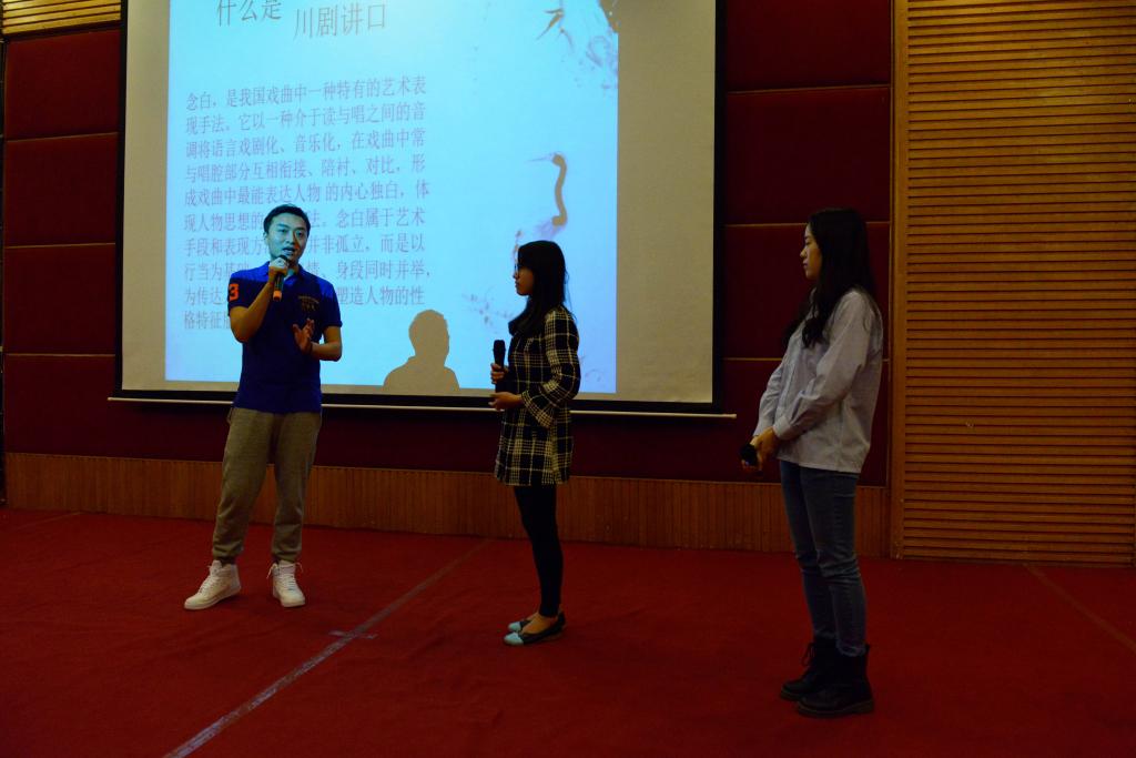 “五四”青年节前夕,由bat365中文官方网站经济学院主办的“传统文化进校园,别样五四话戏曲”活动在7200会场隆重举行。重庆市川剧院青年艺术家张严威老师以风趣幽默的体验式讲座形式带领现场近200名师生就川剧五大行当、唱腔等戏曲知识进行了详细的讲解,为现场观众呈现了一场精彩纷呈的视听盛宴。出席本次活动的嘉宾还包括bat365中文官方网站校团委杨娟副书记,bat365中文官方网站经济学院分党委王小玲书记、于频副书记,以及来自文学与新闻学院、商务策划学院、法学院、会计学院、通识学院等学院的数十名资深戏曲“票友”。此次活动受到新华网、央广网、华龙网、新浪网、大渝网、重庆晚报网、中新社重庆新闻网、重庆晨报等多家主流网媒、纸媒的报道。
