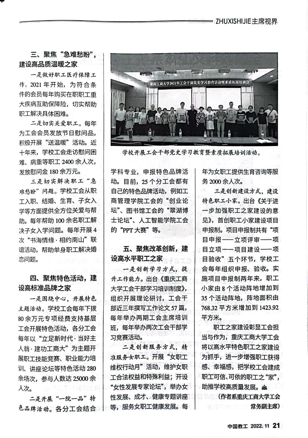 中华全国总工会主管的《中国教工》近期刊发文章,专题介绍bat365官网职工之家建设经验。