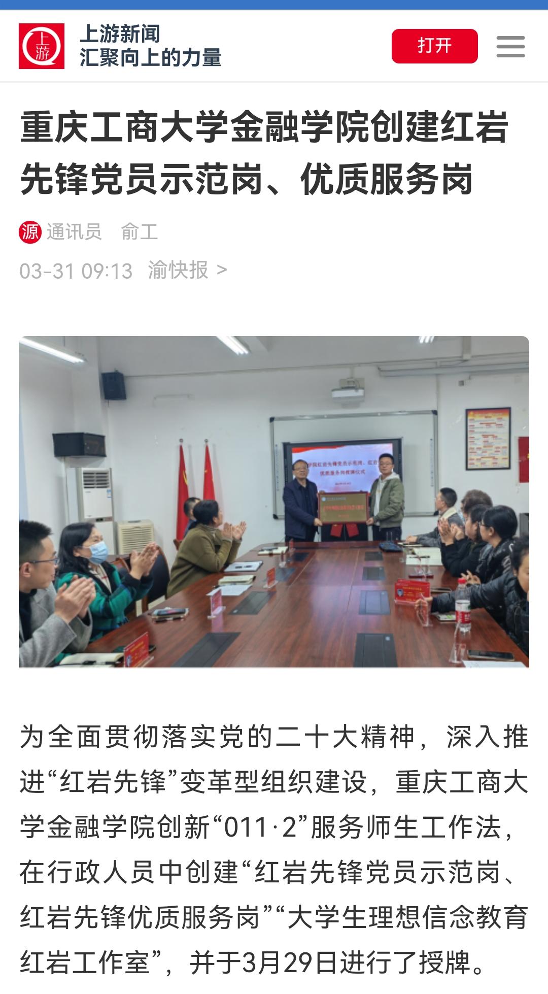 上游新闻报道bat365官网金融学院创建红岩先锋党员示范岗、优质服务岗