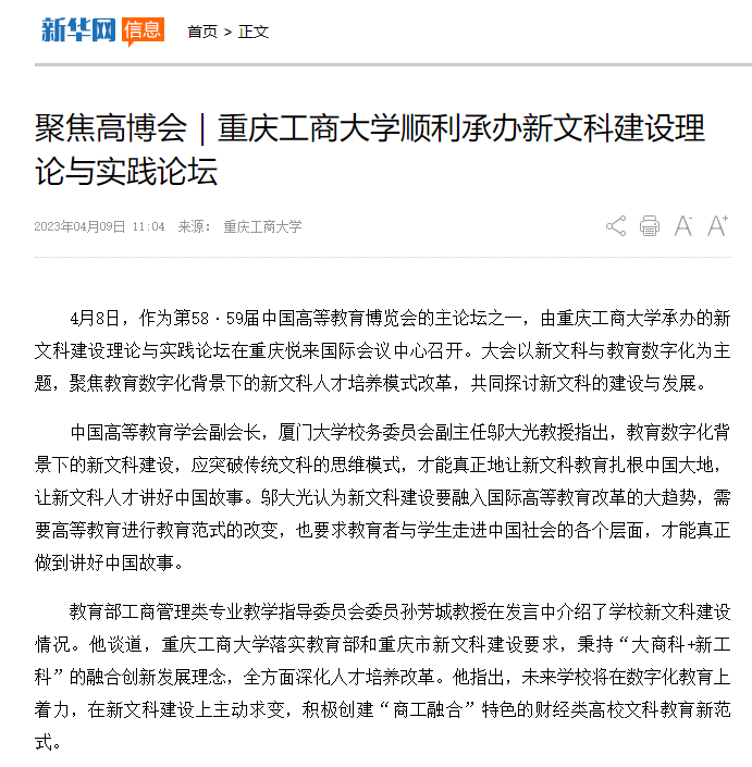 新华网报道bat365官网顺利承办新文科建设理论与实践论坛