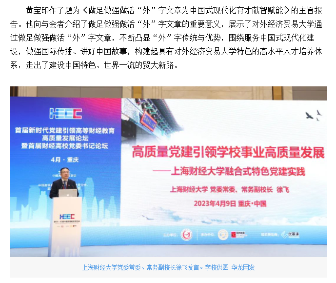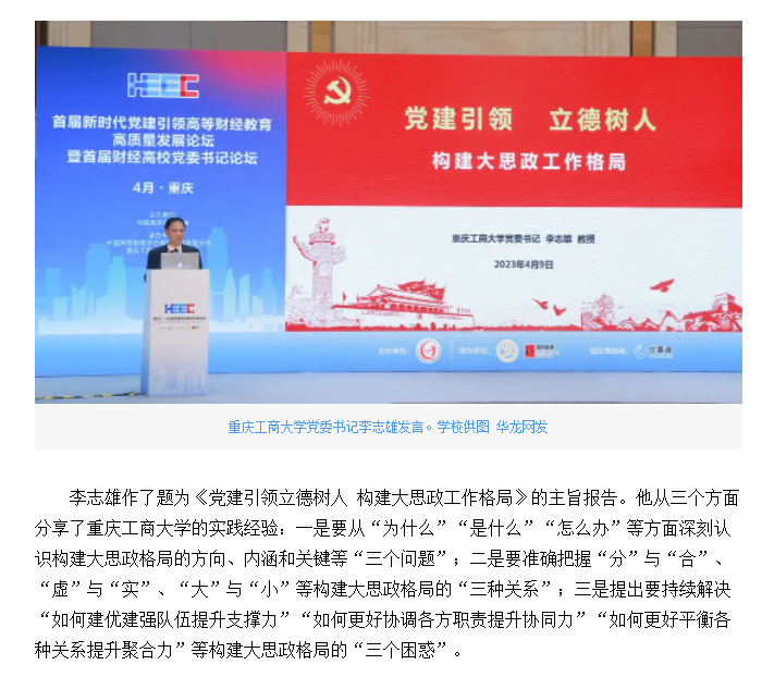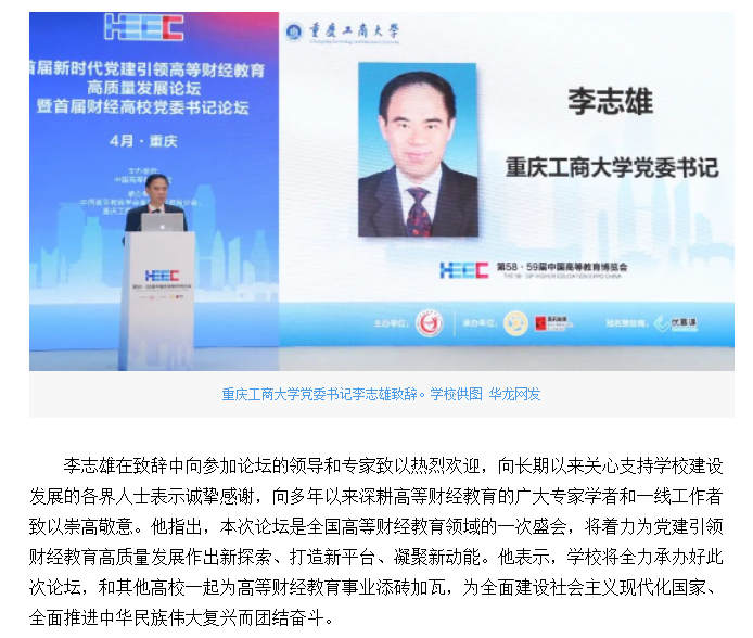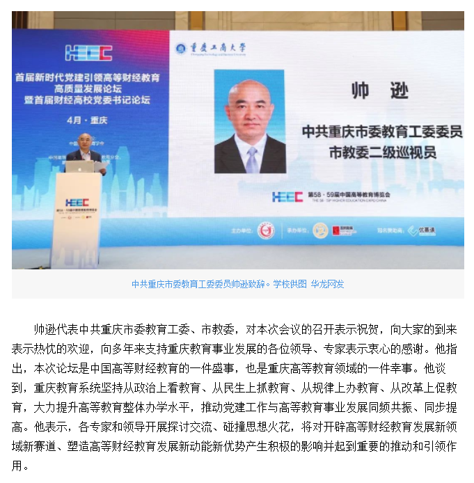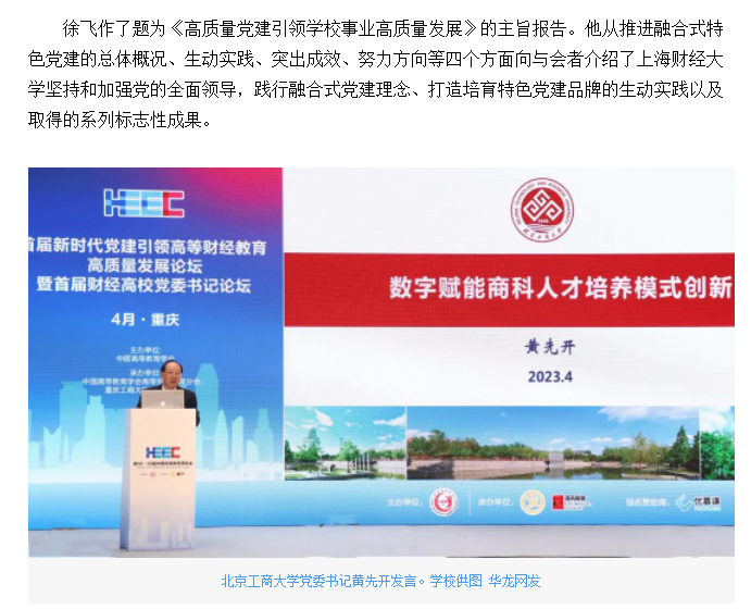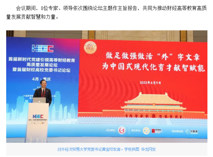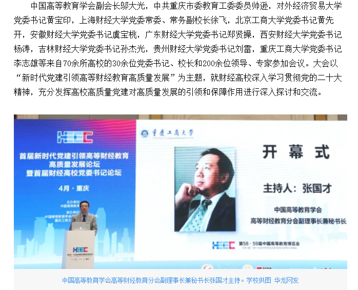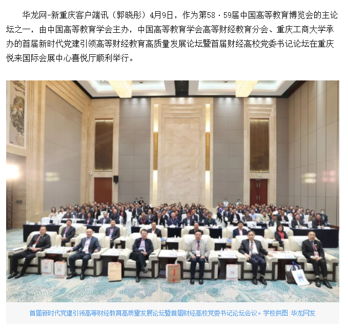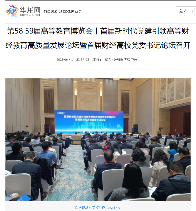 华龙网报道bat365官网承办的首届新时代党建引领高等财经教育高质量发展论坛暨首届财经高校党委书记论坛
