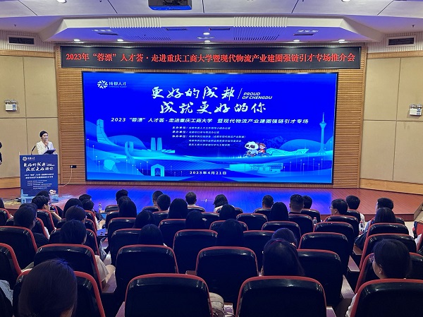 4月21日,“蓉漂”人才荟·走进bat365中文官方网站-战略人才合作推介会在bat365中文官方网站南岸校区顺利举行。来自成都市的6个相关部门、行业协会及28家企业以会为媒,共同推动成都物流业的“强圈建链”行动,以及蓉城企业与重庆高校的联合培养和引智引才行动。