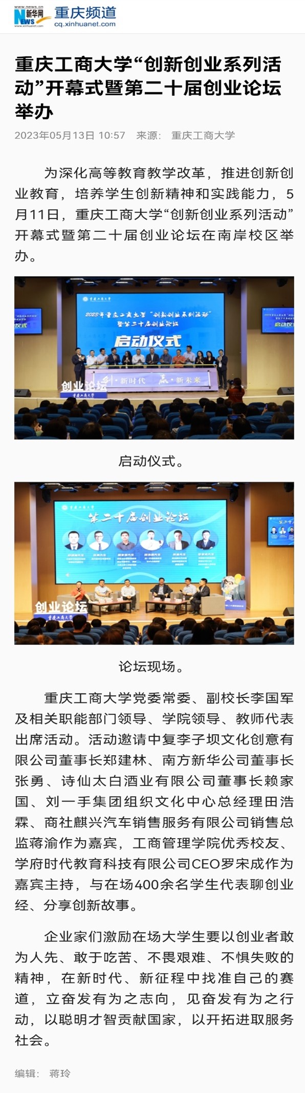 新华网、华龙网报道bat365官网“创新创业系列活动”开幕式暨第二十届创业论坛活动