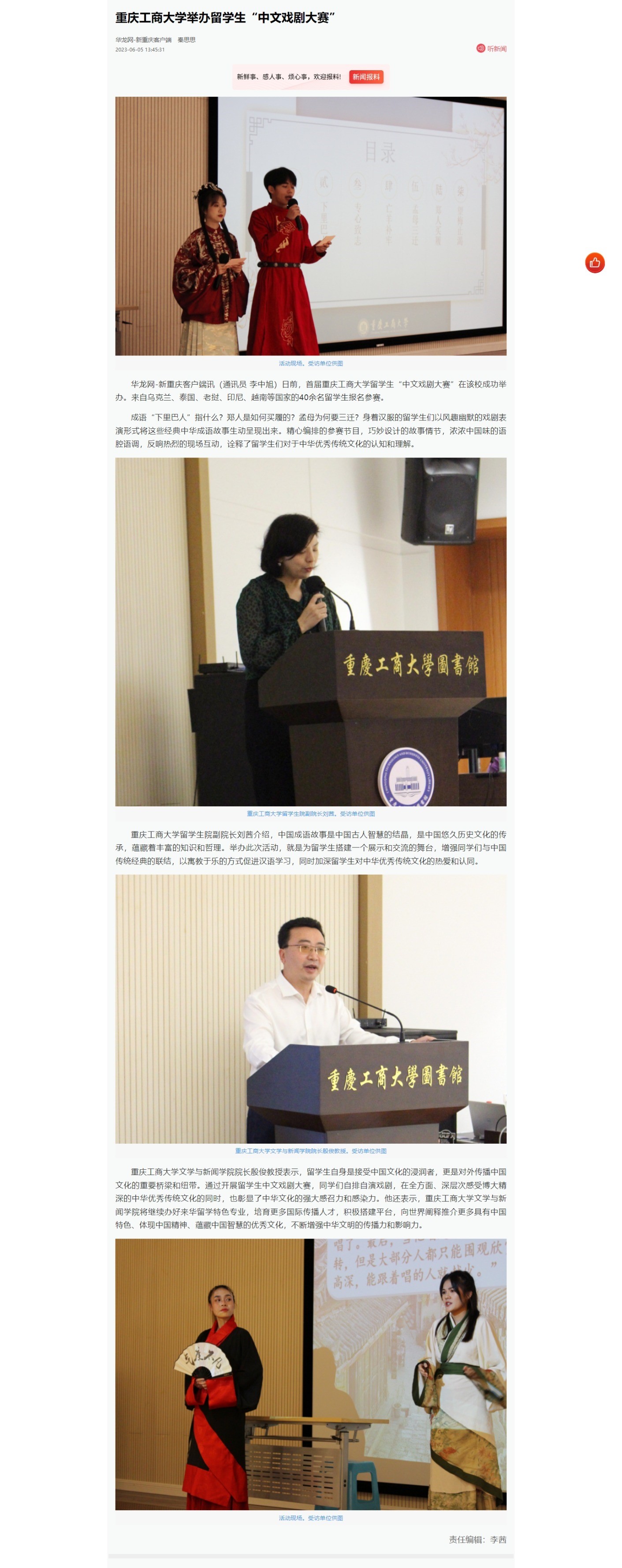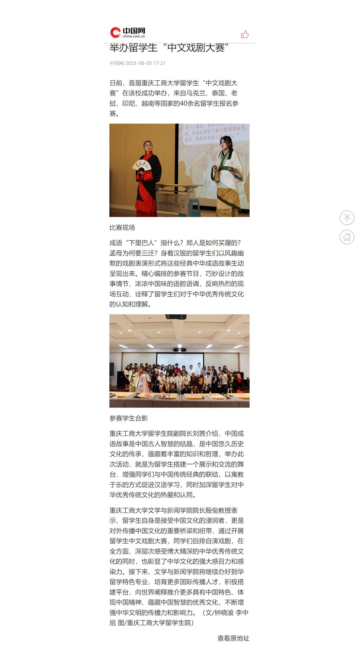 中国新闻网、华龙网、中国网等媒体报道bat365官网留学生首届中文戏剧大赛