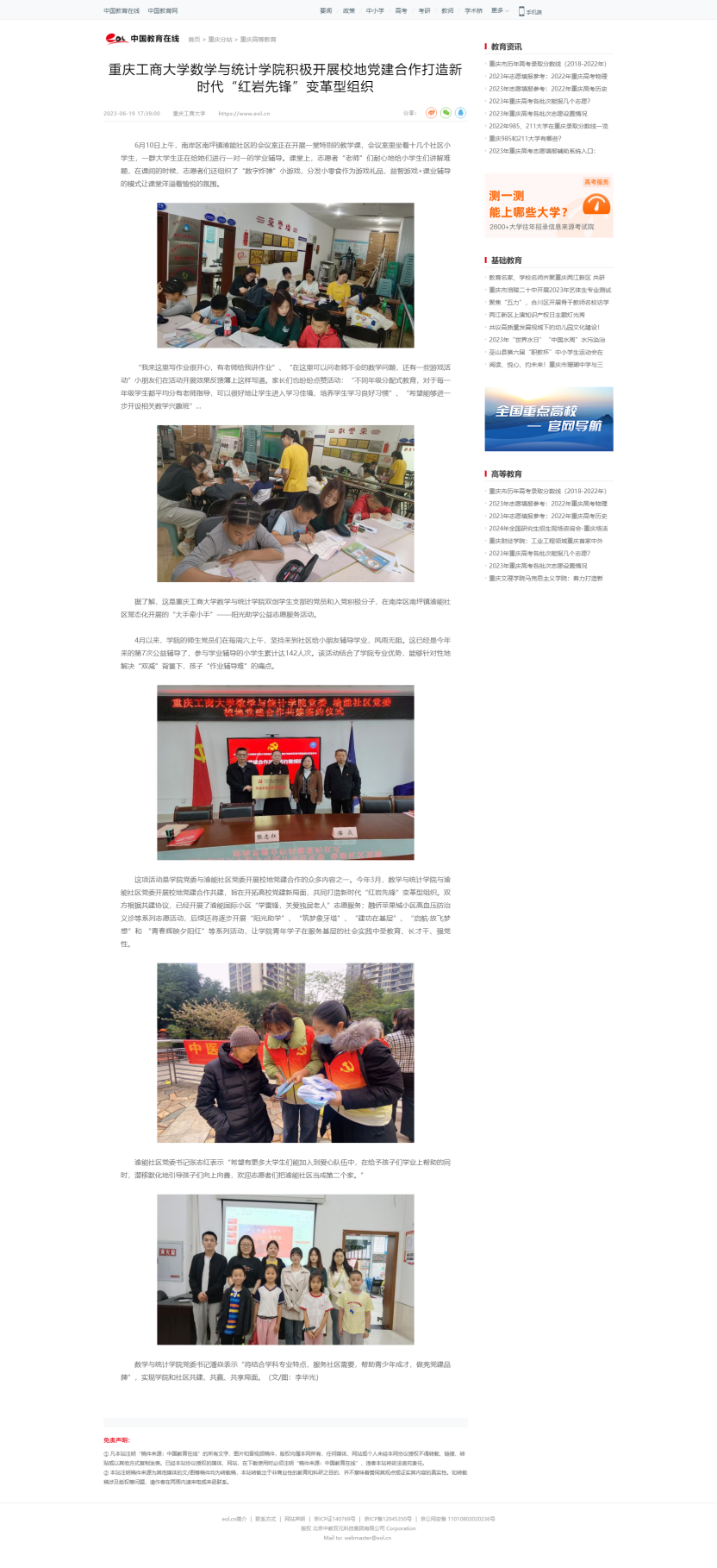 华龙网、中国教育在线、新浪网报道bat365官网数学与统计学院积极开展校地党建合作打造新时代“红岩先锋” 变革型组织