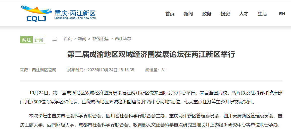 bat365官网参与承办的第二届成渝地区双城经济圈发展论坛受多家主流媒体报道