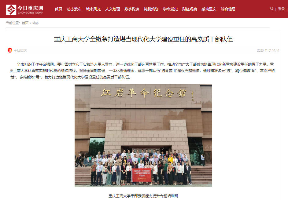 11月1日,今日重庆网以《bat365中文官方网站全链条打造堪当现代化大学建设重任的高素质干部队伍》报道bat365官网干部队伍建设工作的做法经验。