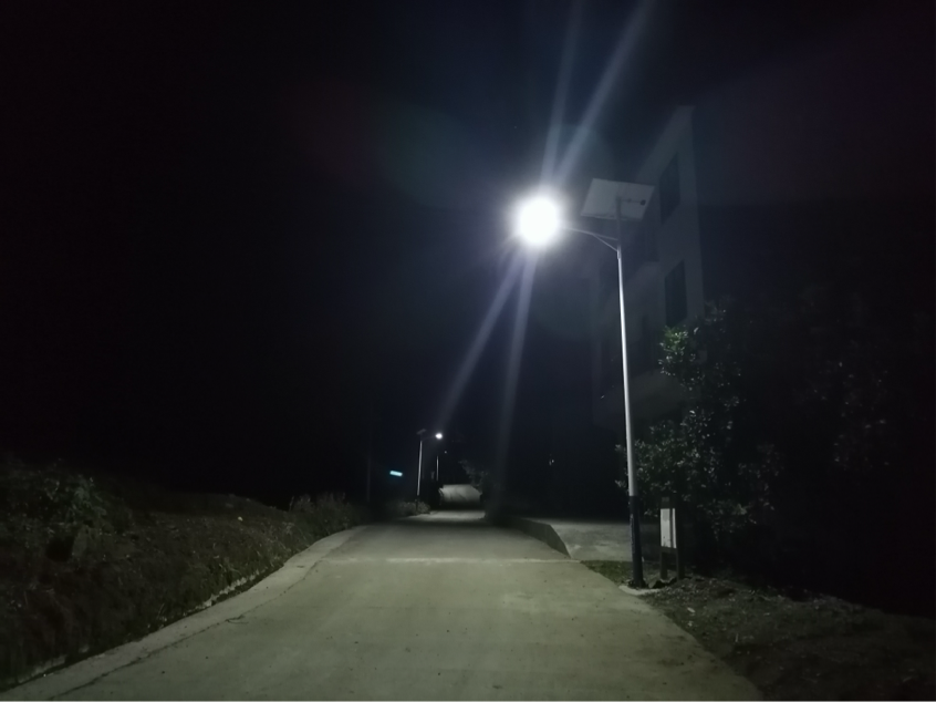 经过一周的努力,全村100盏太阳能路灯已全部安装完毕。