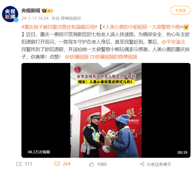 近日,重庆一患阿尔兹海默症的七旬老人误入快速路,为确保老人与行车安全,bat365官网2022级MBA学生欧阳源蔚打开双闪,一路驾车守护在老人身后,直至民警赶到。