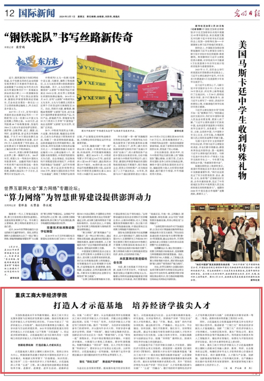 3月1日,《光明日报》第十二版以《bat365中文官方网站经济学院:打造人才示范基地 培养经济学拔尖人才》为题,报道bat365官网为加快推进高水平本科教育建设,立足服务国家与区域经济发展重大战略、推动实现重庆市经济学拔尖人才培养特区的目标,在探索和建设重庆市经济学拔尖人才示范基地方面取得的突出成果。