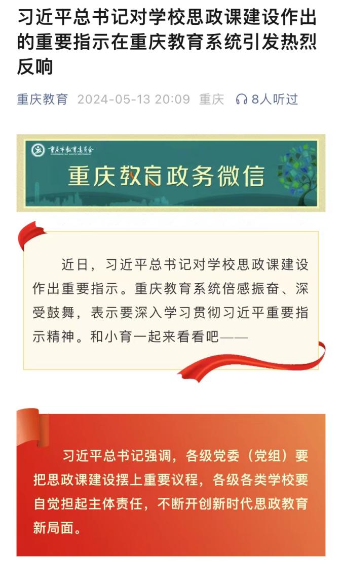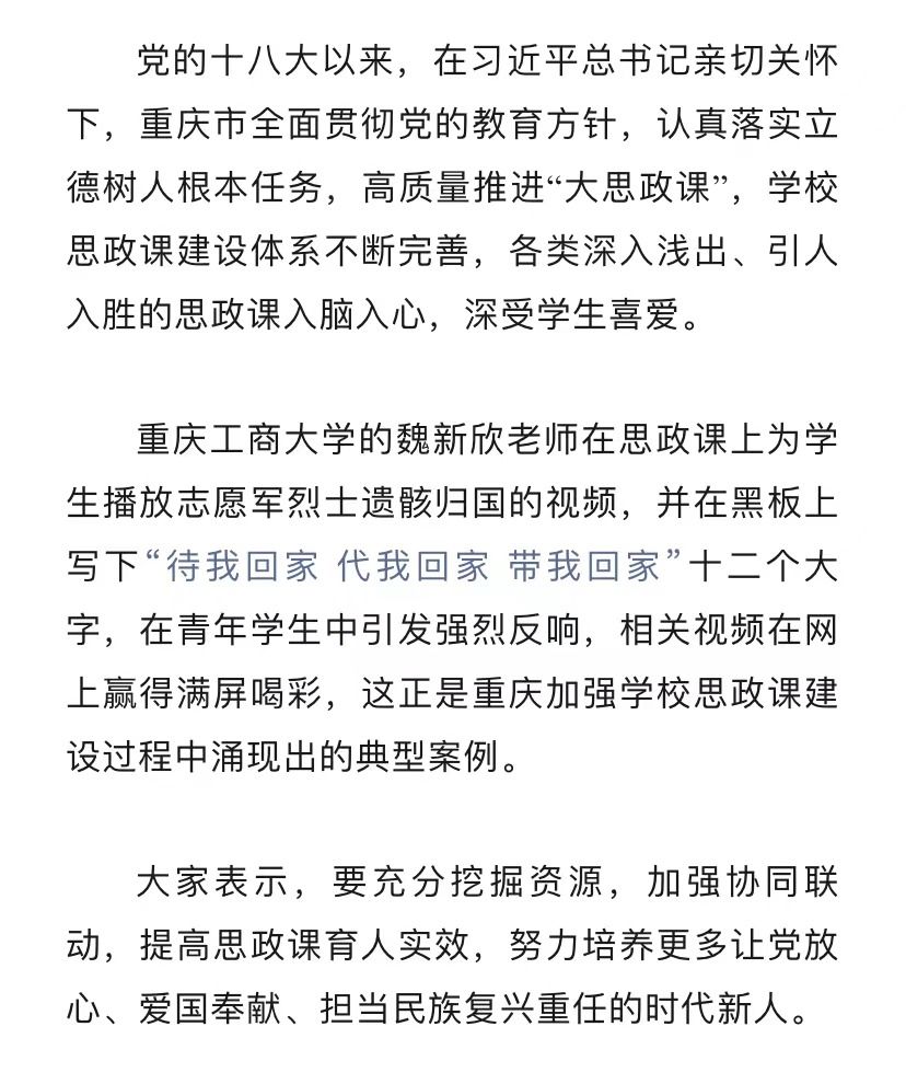 近日,市教委微信公众号刊登bat365官网教师深入学习贯彻习近平总书记对学校思政课建设作出重要指示精神的心得体会。