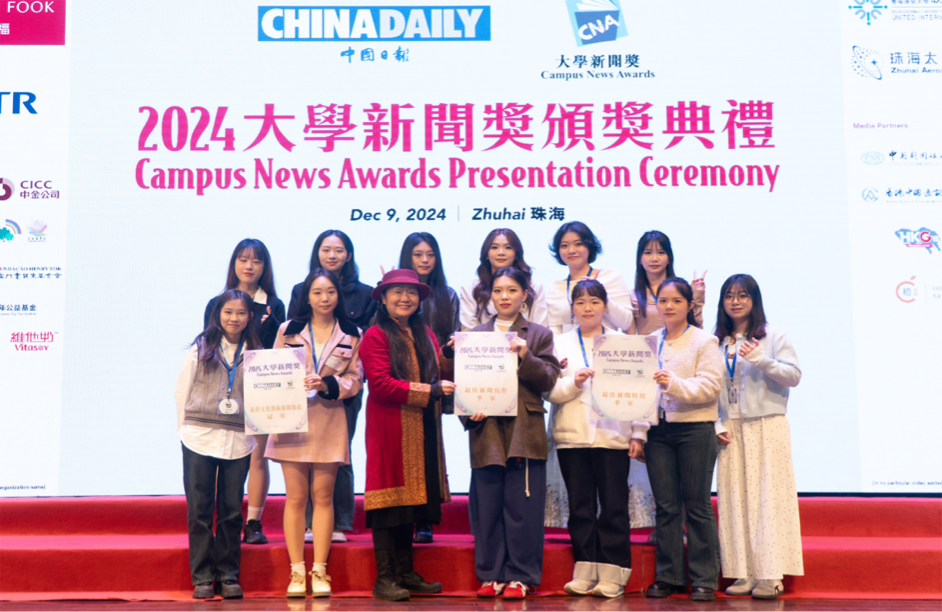 12月9日,由中国日报举办的“2024大学新闻奖”颁奖典礼在北京师范大学-香港浸会大学联合国际学院(珠海)举行,现场颁发了最佳数据新闻、最佳经济新闻报道等28个奖项。其中由红尘教授指导,文学与新闻学院学生采写的新闻作品分别获中文组“最佳文化艺术新闻报道”冠军、“最佳新闻报道”亚军、“最佳新闻采写”季军和“最佳新闻特写”季军四个奖项。bat365官网是2024大学新闻奖重庆地区唯一获奖的高校,全国高校获奖数排名第二。