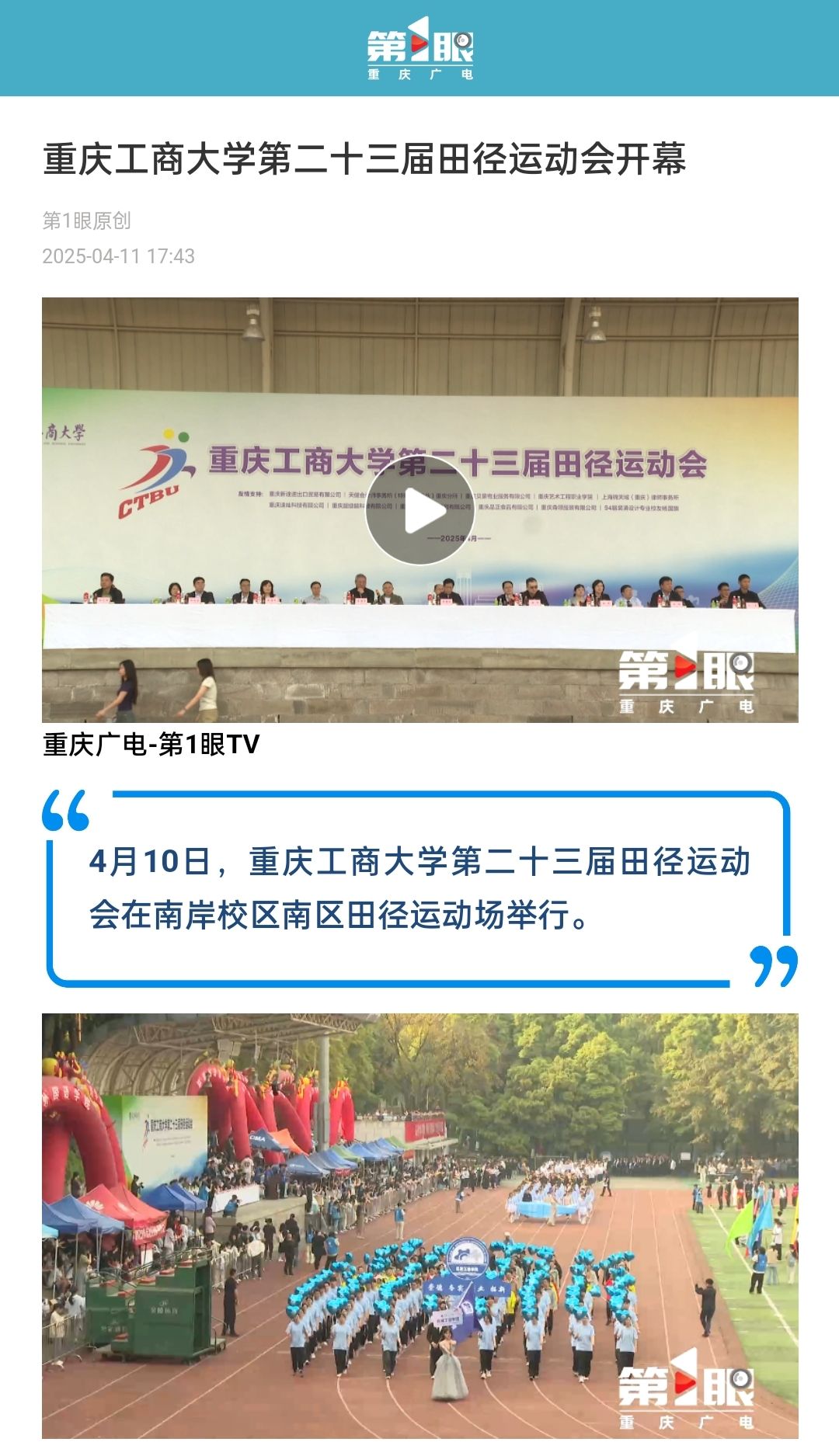 3. 重庆广电:bat365中文官方网站第二十三届田径运动会开幕