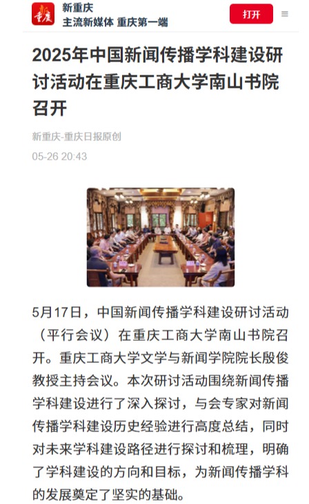 新重庆-重庆日报以《2025年中国新闻传播学科建设研讨活动在bat365中文官方网站南山书院召开》为题对该活动进行报道。