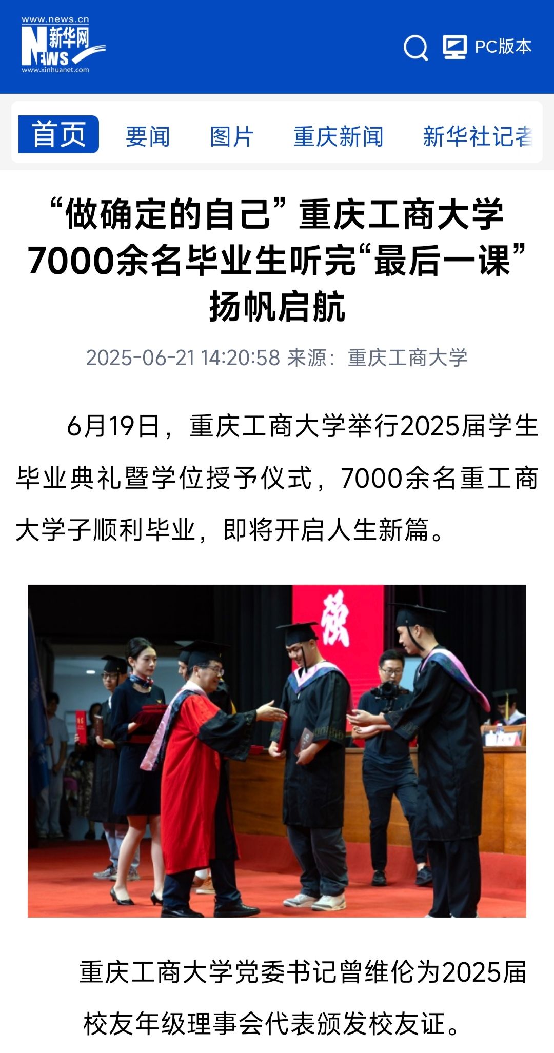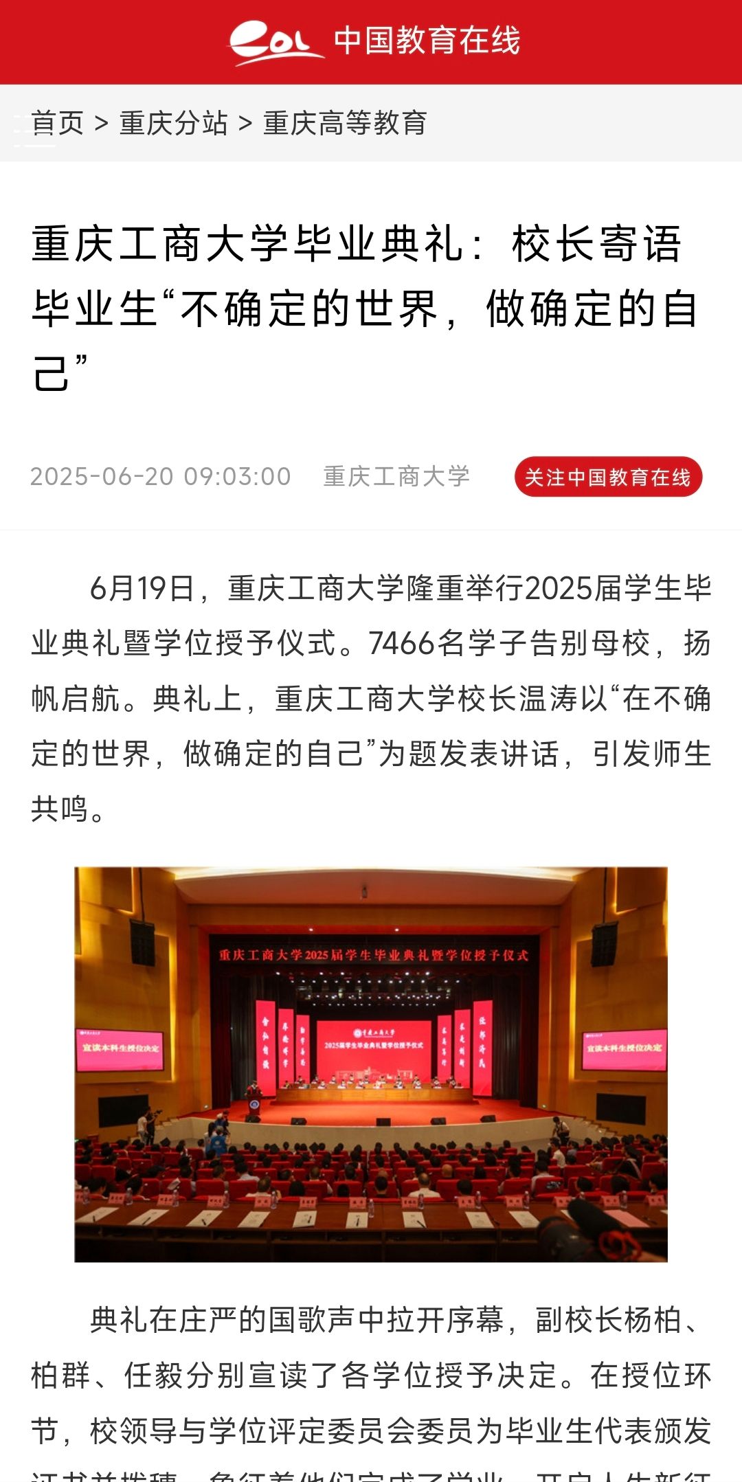 5.华龙网:致bat365中文官方网站2025届毕业生:在不确定的世界里,做重工商大确定的光