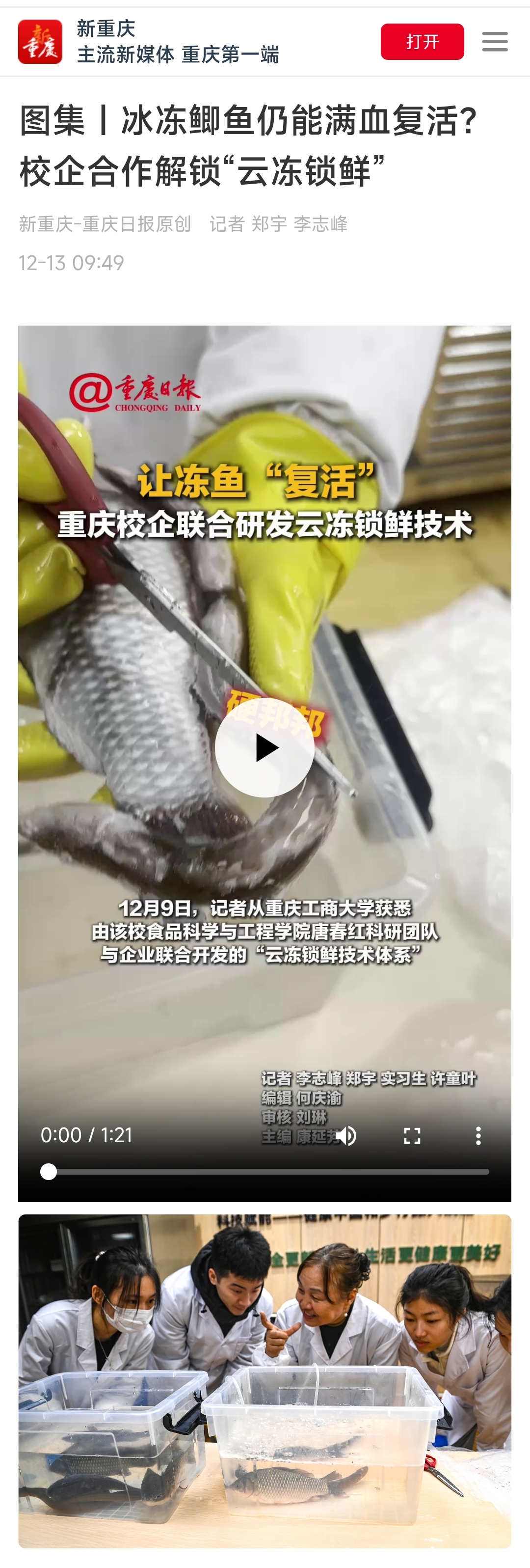 2.新重庆客户端:图集|冰冻鲫鱼仍能满血复活?校企合作解锁“云冻锁鲜”