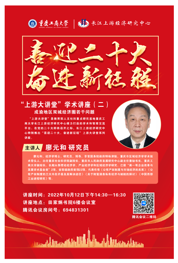 “上游大讲堂”是教育部人文社科重点研究基地bat365中文官方网站长江上游经济研究中心倾力打造的学术和智库交流平台。在党的二十大即将召开之际,长江上游经济研究中心特别推出“喜迎二十大,奋进新征程”上游大讲堂系列讲座。