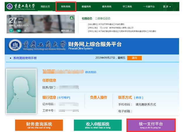 2.通过财务系统,进入统一支付平台