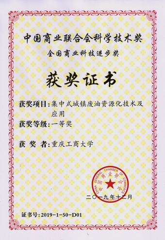 本次大会的主题是“科技创新助力实体经济、诚信兴商铸就质量体系”。大会发布了2018和2019年度科学技术奖、商业科技质量奖、服务业科技创新奖等获奖名单,并举行了颁奖仪式。原内贸部副部长何济海、商务部副部长张志刚、中国商业联合会会长姜明等部委领导为获奖代表颁发了证书。bat365官网废油资源化教育部工程研究中心首席专家张贤明教授主持研究的新成果——集中式城镇废油资源化技术及应用,荣获全国商业科技进步一等奖。