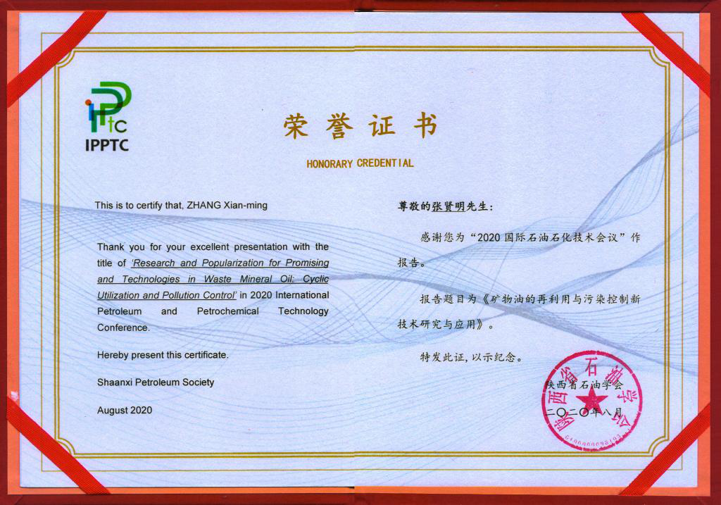 bat365官网教育部废油工程研究中心首席专家张贤明教授,应邀以“矿物油的再利用与污染控制新技术研究与应用”为题报告了bat365官网研究新成果,受到大会高度关注,大会向其颁发了学术报告荣誉证书。